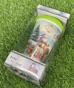 SET DE JARRA CERÁMICA CON PLATO Y CUCHARA DE MUÑECO NIEVE 1UND (3PCS)