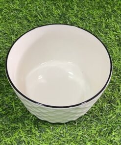 TAZA CERÁMICA DE DIAMANTE COLOR BLANCO CON BORDE NEGRO 6″ 1UND