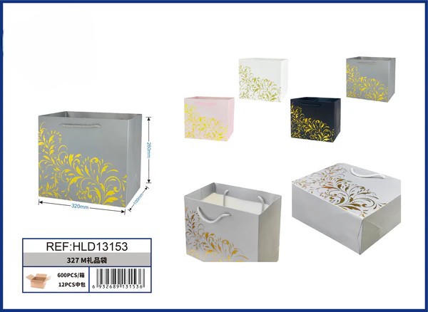 BOLSA DE REGALO DE COLOR LISO CON DISEÑOS DORADOS 32*26*12CM 1UND