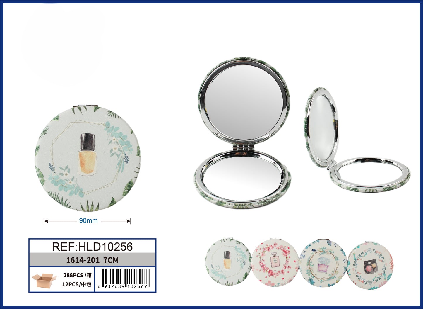 ESPEJO DOBLE PARA BOLSO DE REDONDO CON DISEÑO PERFUME 7CM 1UND