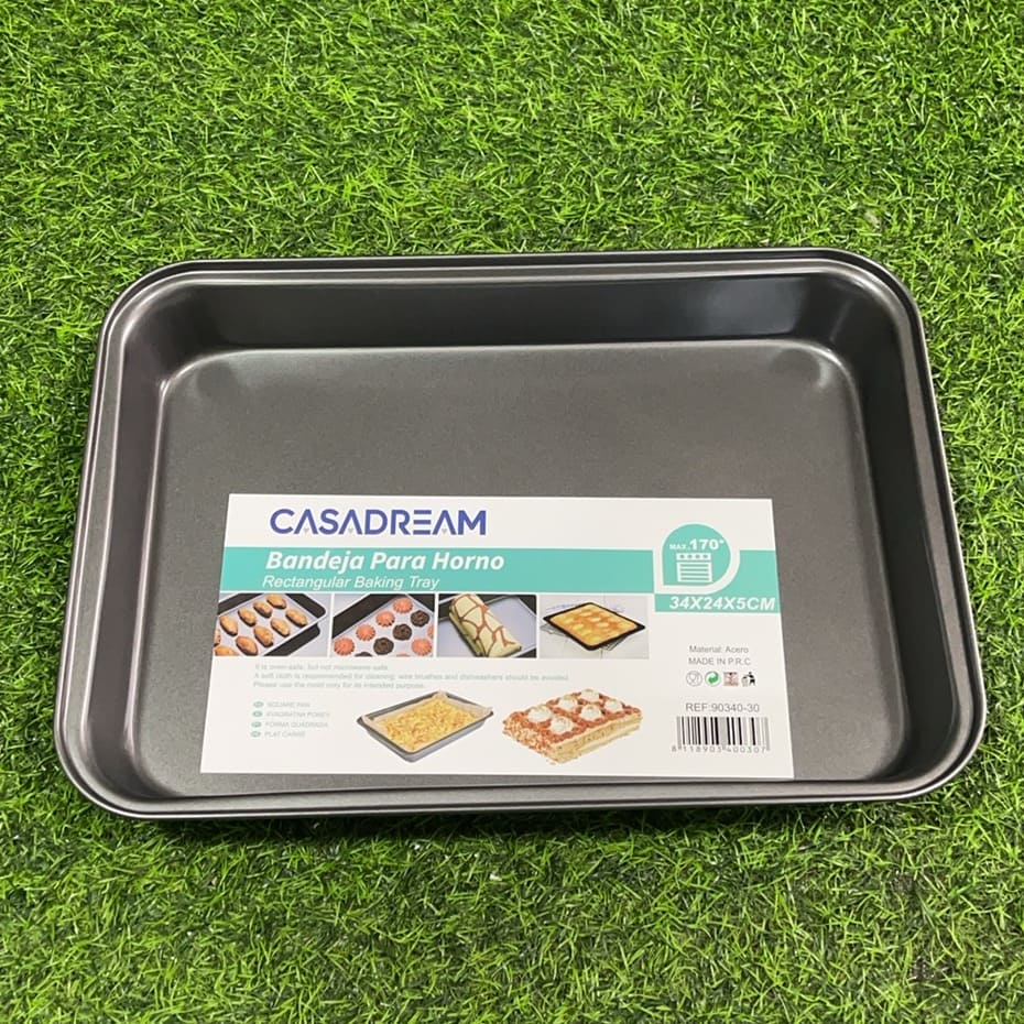 MOLDE RECTANGULAR DE HORNO PARA PIZZA O POSTRES 34*24*5CM 1UND