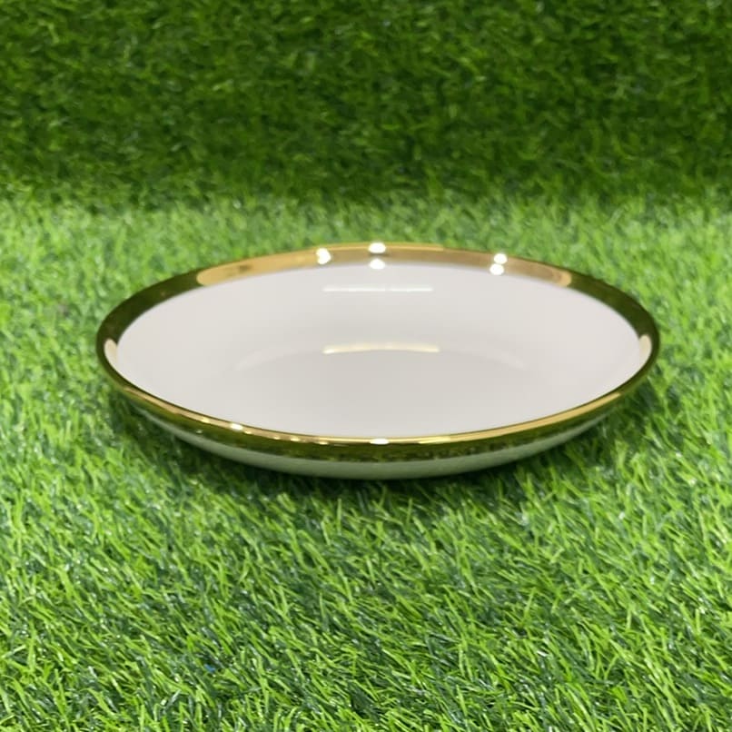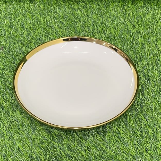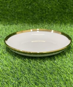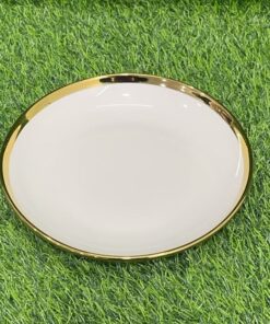 PLATO CERÁMICA DE COLOR BLANCO CON BORDE DORADO 9″ 1UND