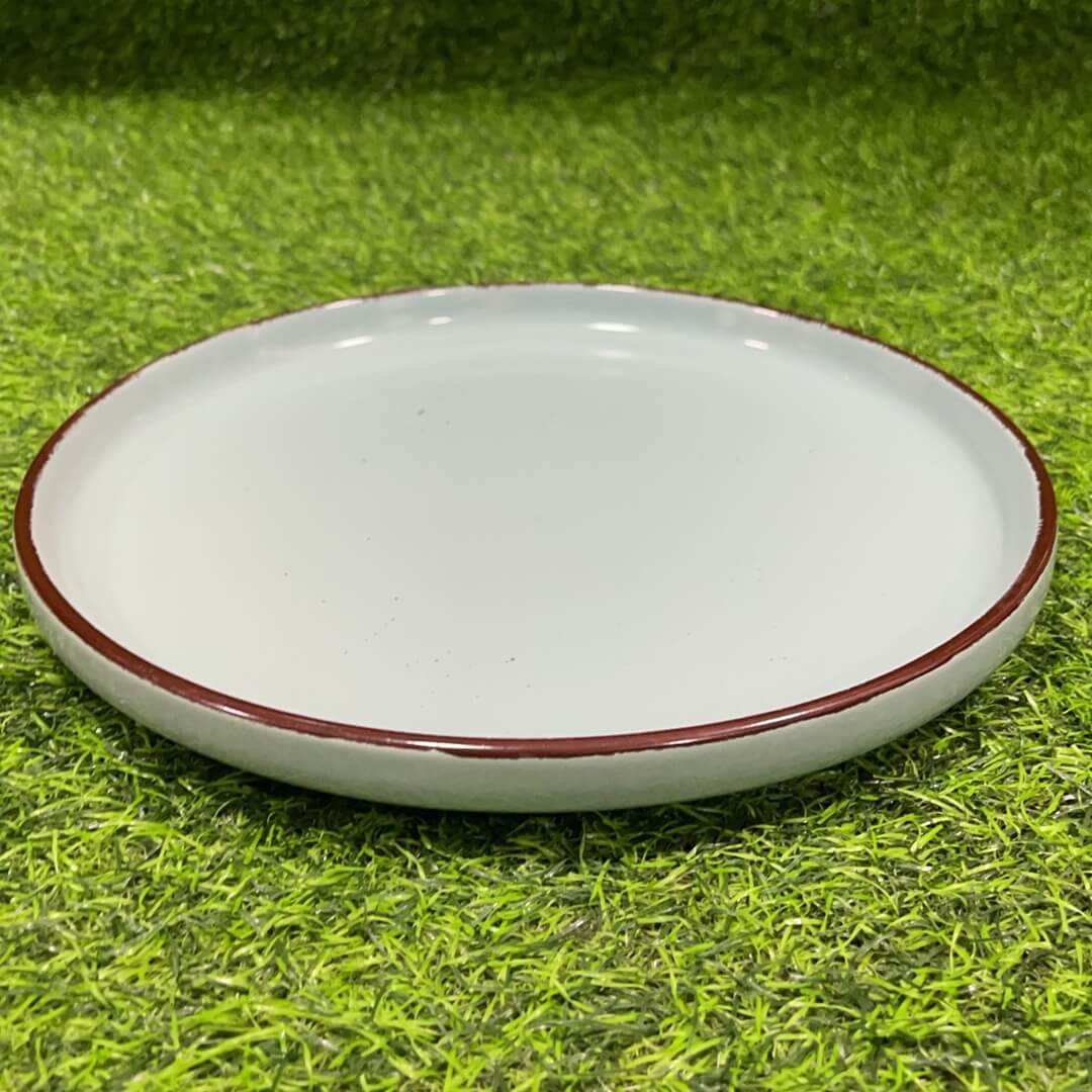 PLATO CERÁMICA DE COLOR LISO CON BORDE VINO 10.5″ 1UND