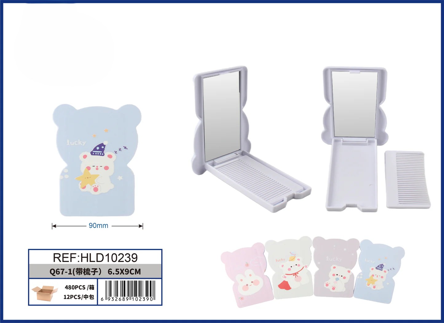 SET DE ESPEJO CON PEINE PARA BOLSO DE DISEÑO DE OSO 6.5*9CM 1UND (2PCS)
