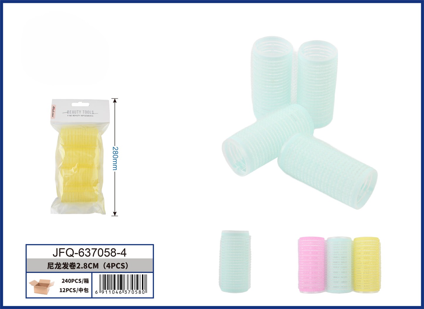 SET DE RIZADOR PARA CABELLO DE NYLON 2.8CM 1UND (4PCS)