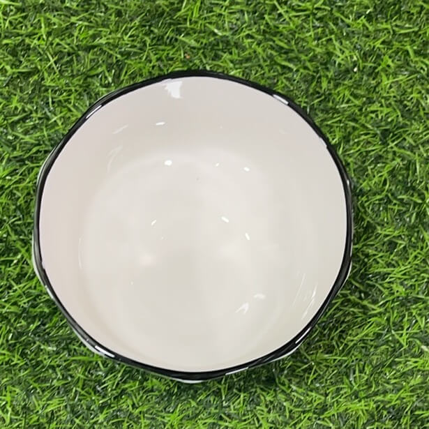JARRA CERÁMICA PEQUEÑA DE DISEÑOS CON COLOR LISO Y BORDE DE COLOR NEGRA 1UND