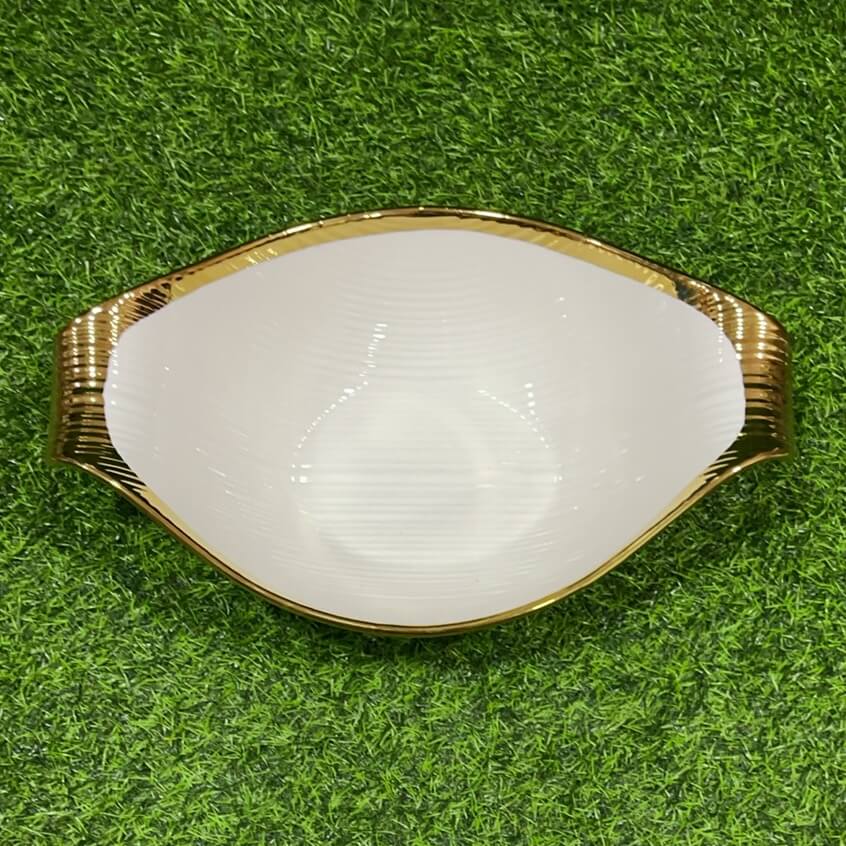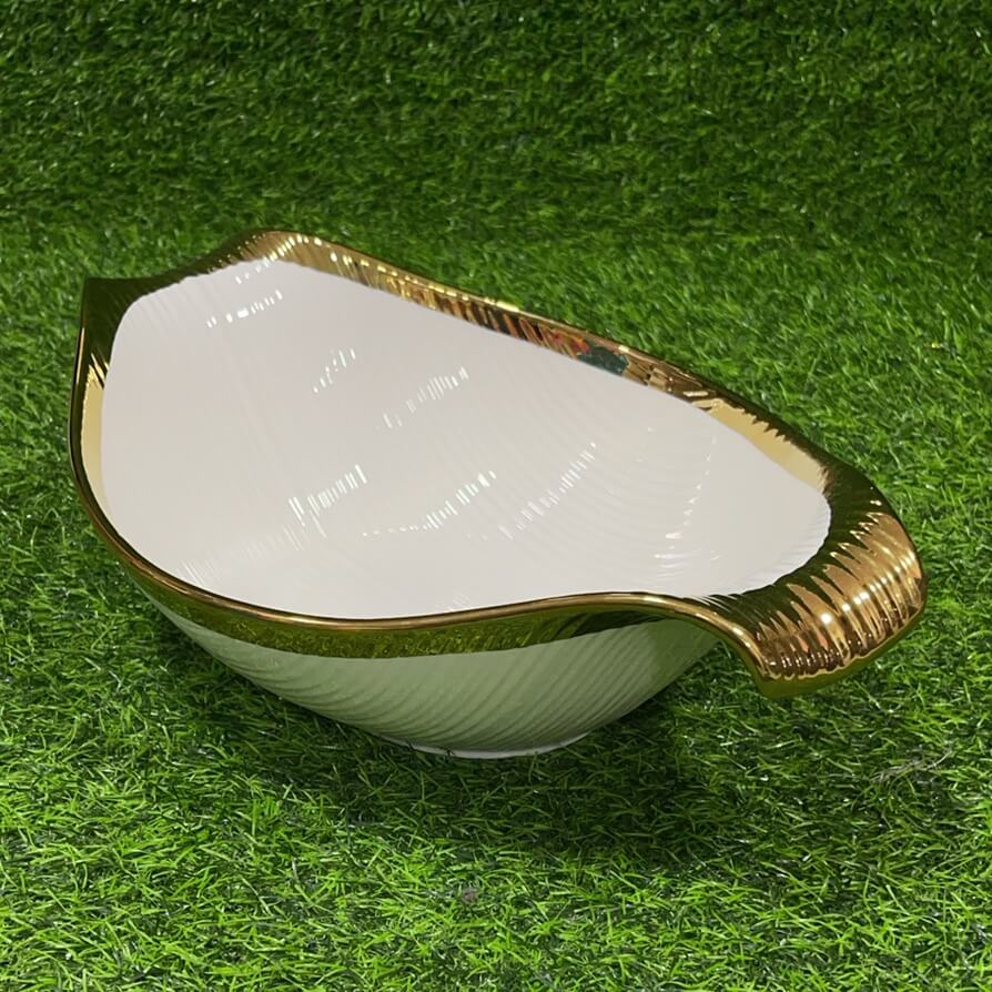 TAZA CERÁMICA PARA ENSALADA CON BORDE DORADO 14″ 1UND