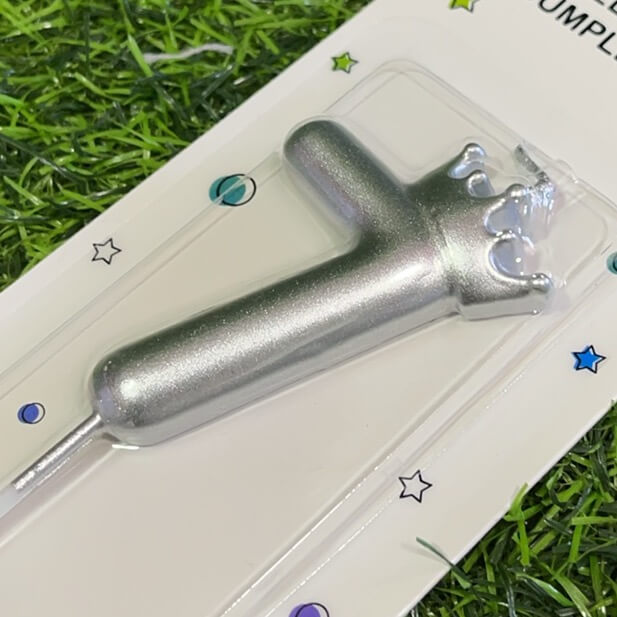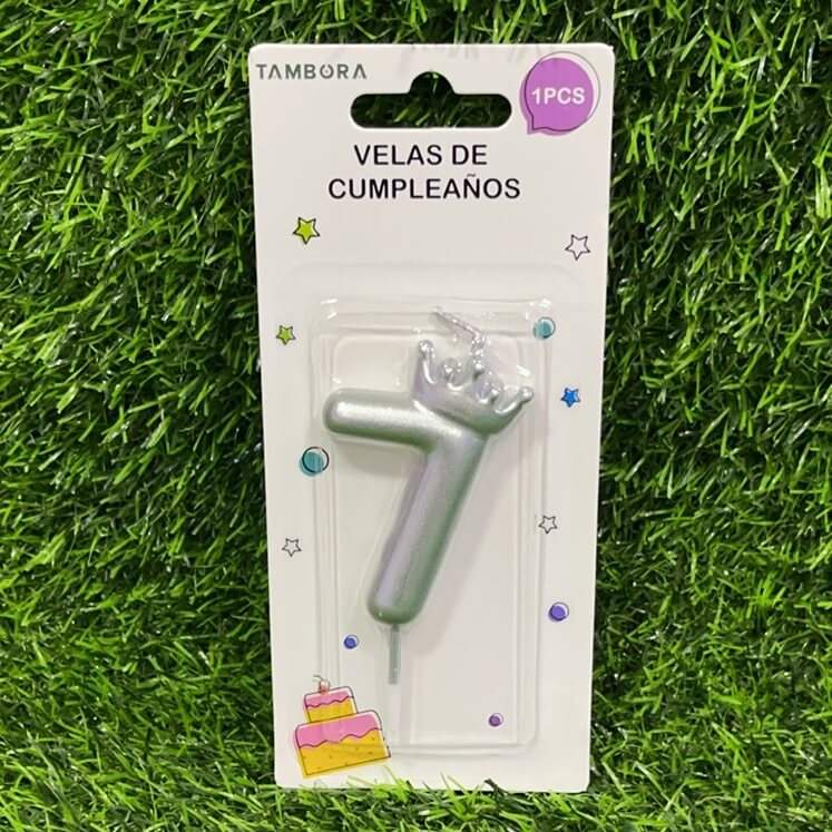 VELA NUMÉRICA CON CORONA COLOR PLATEADA #7 6.8CM 1UND