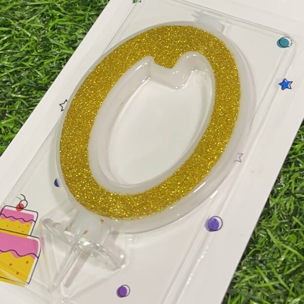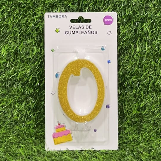 VELA NUMÉRICA CON ESCARCHA DE COLOR DORADA #0 9.5CM 1UND